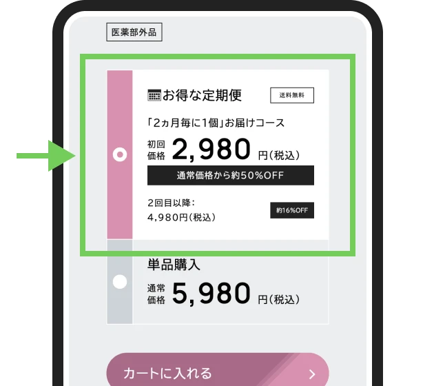 - いつでも定期会員特別価格でご購入いただけます。初回はさらにお得な「初回特別価格」でお届けします。