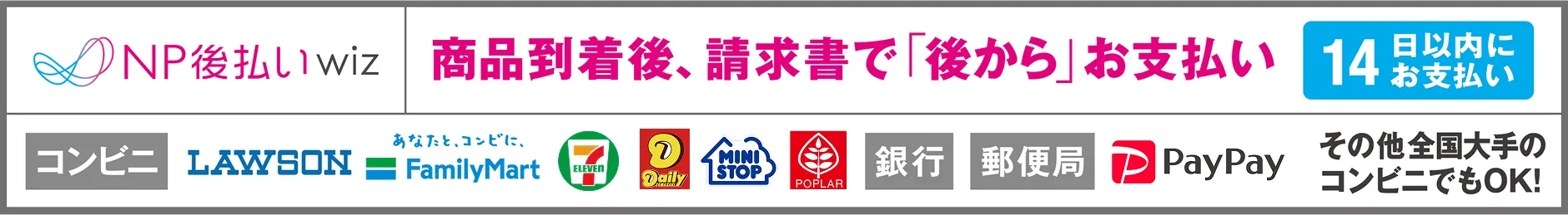 クレジットカード、NP後払い(コンビニ・銀行・郵便局・PayPay)、Amazon Pay、あと払い(ペイディ)からお選びいただけます。