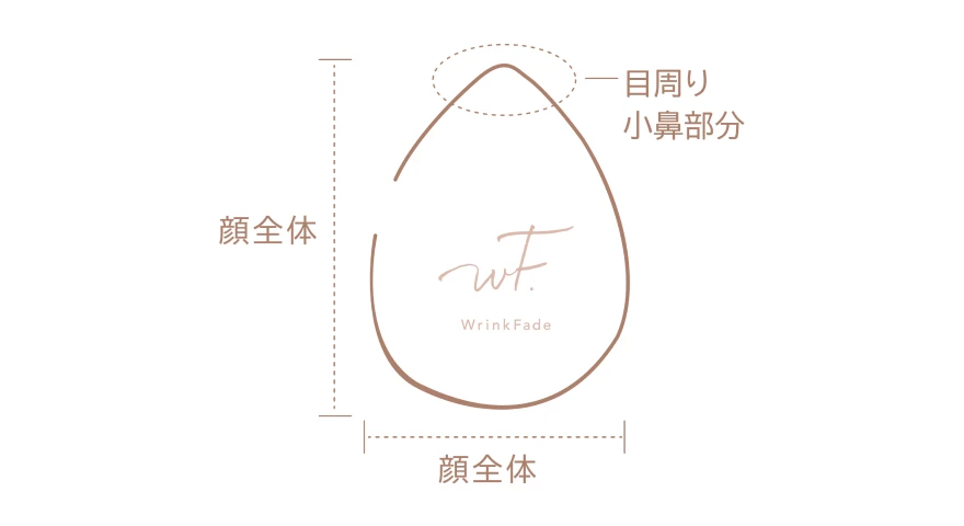 丸みのある部分は密着感に優れ、細くなっている部分は小鼻の脇など細かいところに塗り込むのに便利なしずく型です。